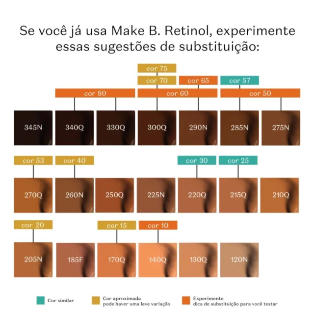 Apresentamos a Base Líquida FPS80 Make B. Retinol³ H+ Cor 185F, a primeira base do Brasil com Triplo Retinol: reduz linhas e rugas profundas e aumenta em até 60% a produção de colágeno** , tudo com a mesma fórmula e acabamento que você já conhece.