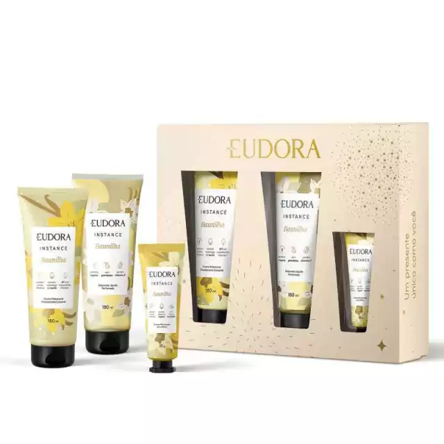 Kit Presente Instance Baunilha foi criado especialmente para aquela pessoa que adora se cuidar e sabe que seu tempo precioso tem que valer cada minuto. Cada item vem com Extrato Natural de Baunilha e fragrância inconfundível deixa a sua pele macia, perfumada e profundamente hidratada o dia inteiro. Com uma linda caixa para presente, já vem pronto para presentear!