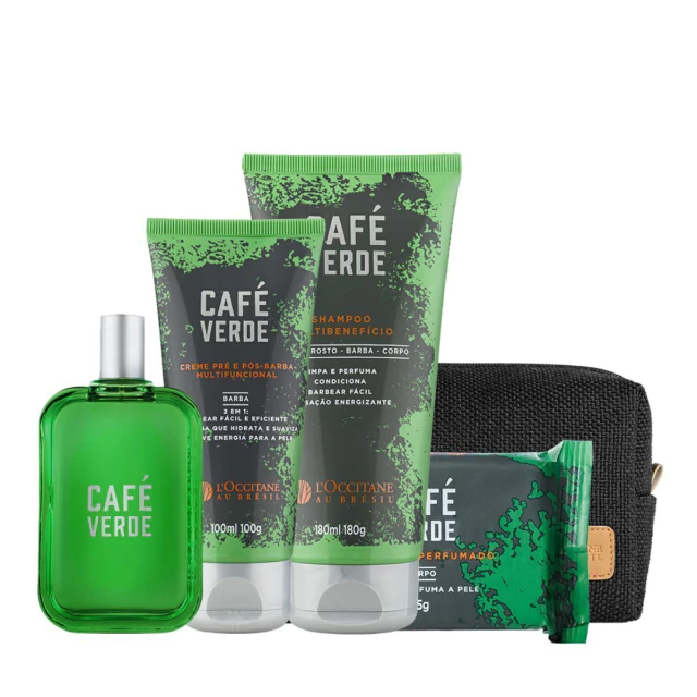 1 Shampoo Multibenefício Café Verde 180ml: L'Occitane au Brésil encontrou na energia do Café Verde a inspiração para esta linha masculina de produtos para o corpo, rosto e cabelos, com benefícios desenvolvidos especialmente para o homem brasileiro. Esse shampoo multibenefício combina diversos benefícios em uma única fórmula.